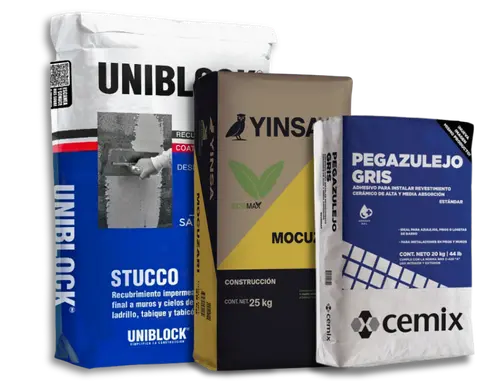 Contamos con productos como cemento, mortero, yeso, estucos, adhesivos